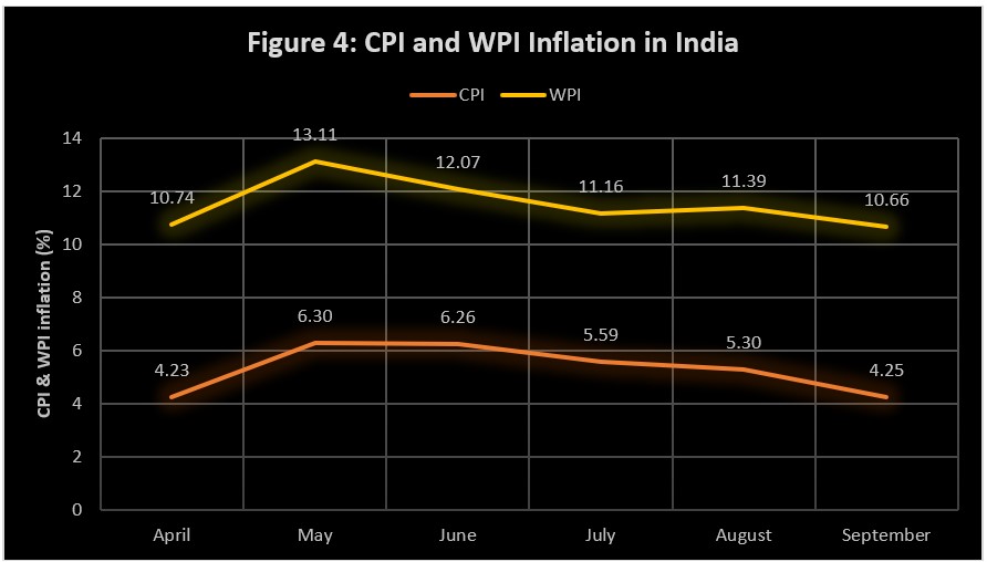 WPI inflation in the country has been increasing much faster than CPI inflation, since March 2021. Consequently, it is expected that retail inflation would slowly move closer towards wholesale inflation, in the months to come. Dr. Pronab Sen, former Chief Statistician of India has put it succinctly: “Rising WPI will, by and large, translate into higher retail prices.” High wholesale inflation indicates that input price pressures are still quite high, which will eventually reflect on retail prices.